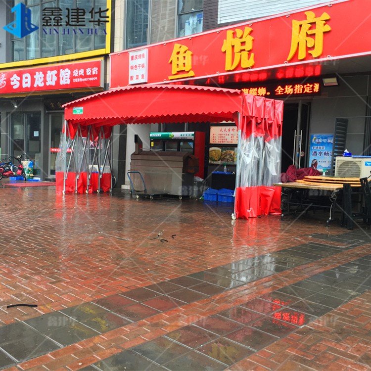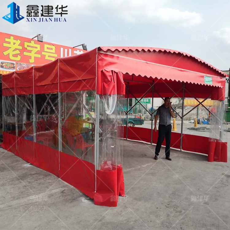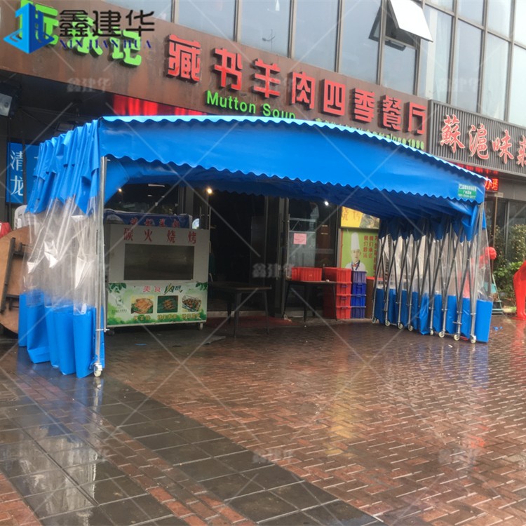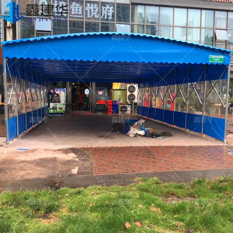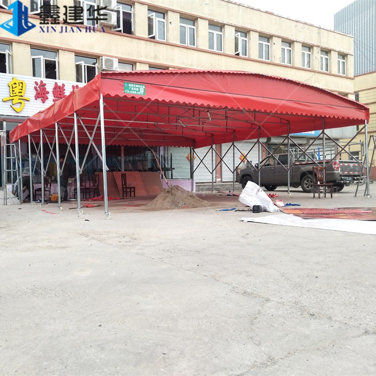 濟南室外電動伸縮雨棚 鋼結構移動推拉篷廠家定制