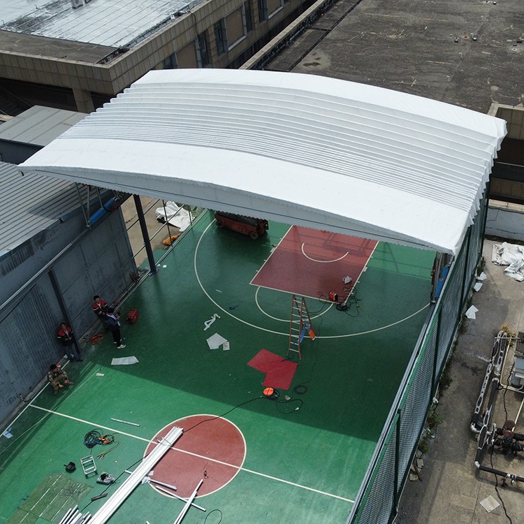 籃球場電動伸縮雨棚 鋼結構移動防雨蓬